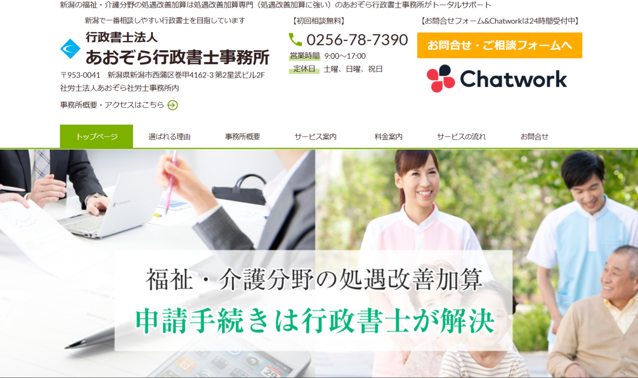 新潟の建設業許可・産廃収運業許可のことなら、あおぞら行政書士事務所にお任せください。 お問合せフォーム&Chatworkは24時間受付中